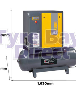 The SIP Sirio 11-10-500 is a powerful screw compressor with an IE3 motor, ETM II electronic controller for detailed system readings, and a POLY-V belt drive system for efficiency and life.